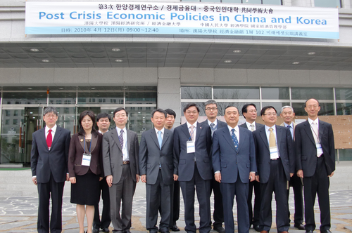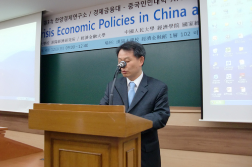 研讨会采用英语交流。汉阳大学经济研究所现任所长金明稷教授和原任所长安锡教教授分别主持了两个单元的研讨。在第一个单元,汉阳大学李荣教授和我院国民经济管理系副主任方芳教授分别发表了题为《韩国应对国际金融危机的一揽子宏观经济政策分析》和《反危机的中国货币政策的分析》的论文讲演;在第二单元,我院国民经济管理系郑超愚教授和汉阳大学经济研究所所长金明稷教授分别发表题为《后危机时代中国宏观经济政策的调整》和《韩国后危机时代退出政策的定量效果分析》的论文讲演。两国学者就后危机时代的宏观经济政策以及全球经济的走势进行了富有成效的讨论。