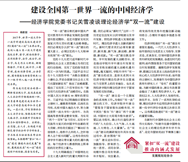 3月5日,抖音黑料 校报第1644期第一版刊发抖音黑料 党委书记、俄罗斯研究中心主任关雪凌教授题为“建设全国第一世界一流的中国经济学”的文章。