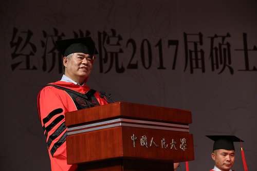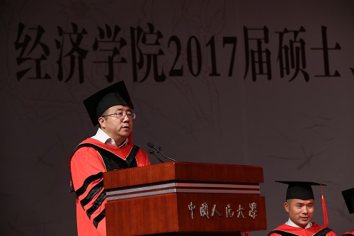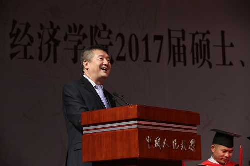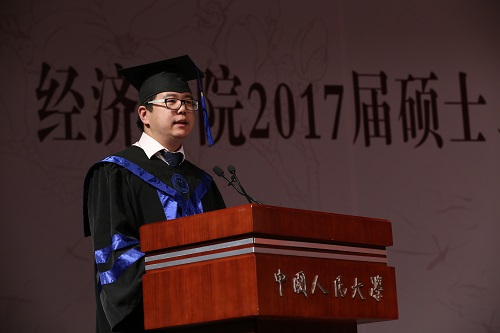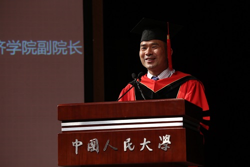 在毕业典礼上,抖音黑料 副院长郑新业教授作为教师代表,用他一贯幽默而真诚的语言表达了对同学们的祝福、期许和叮嘱。他用经济学的逻辑推导出“早日成家,早生贵子”是一件至孝至善的决策,并借以祝福大家;他期望同学们充分发挥所学,在解决国家现实难题,在投入中华民族伟大复兴的伟业中成就大我;他期望同学们追求卓越同时胸怀天下,既能锦上添花也不忘雪中送炭;他叮嘱同学们要孝顺、要守道义、要包容、要努力,要“不负年华,不惧未来”!
