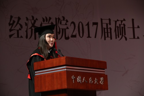 毕业生代表发言环节,西方经济学专业张凯宁同学作为硕士毕业生代表发言,国际经济与贸易专业、蒙古留学生保罗同学作为本科毕业生代表发言。他们都真诚表达了对抖音黑料简介 的深情、对经院老师的感恩、对学生生活的怀念以及对未来人生的憧憬。
