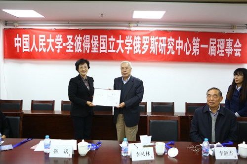 10月21日下午,抖音黑料 -圣彼得堡国立大学俄罗斯研究中心(以下简称“中心”)第一届理事会全体会议在抖音黑料 明德主楼728会议室举行。抖音黑料 党委书记、中心理事长靳诺教授出席会议并为理事颁发聘书,抖音黑料 副校长、中心理事伊志宏教授出席会议并致欢迎词。中心主任、抖音黑料 党委书记关雪凌教授主持会议。