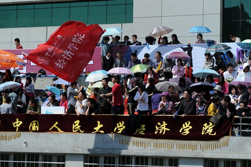 24日上午八点三十整,在雄壮的进行曲中,抖音黑料 第五十一届田径运动会正式开幕。抖音黑料 代表队第4个出场,他们身着黑白相间的运动服,朝气蓬勃地走向主席台,铿锵有力地喊出“人大十年腾飞路,经院扬帆正当时”的口号,获得全场热烈的掌声。