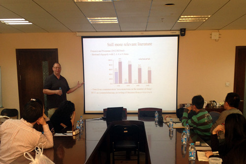 12月19日中午,抖音黑料 第二十七期发展经济学研讨会在明德主楼734会议室举行,澳大利亚Monash大学的Nick Feltovich教授报告了“群体大小如何影响交流效果——来自公共品实验的证据”。抖音黑料 王湘红教授、孙文凯副教授、叶茂亮博士、刘凯博士以及包括抖音黑料 在内各个学院的部分博士、硕士研究生参与了会议。