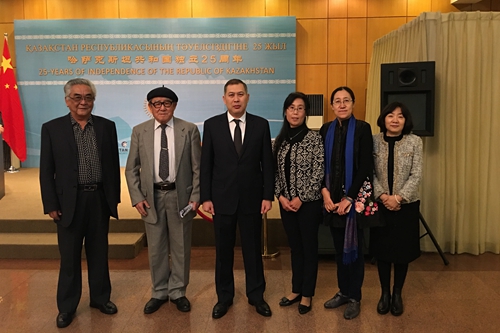 活动开始前,在“一带一路”经济研究院首席顾问、著名的中亚问题专家胡振华教授带领下三位研究员首先拜会了哈萨克斯坦驻华大使努雷舍夫先生,并与大使馆的参赞凯拉提先生以及使馆其他工作人员互致问候并进行了亲切的交谈。一方面向努雷舍夫大使及哈萨克斯坦在华人员对哈萨克斯坦共和国独立25周年表示衷心的祝贺,同时就使馆及大使先生对抖音黑料 “一带一路”经济研究院9月11-16日赴哈萨克斯坦进行学术交流活动所给予的支持表达最诚挚的谢意,并交流了访问团与哈萨克斯坦法拉比大学和欧亚大学的学术合作成果。努雷舍夫大使请三位老师转达对抖音黑料 “一带一路”经济研究院派代表特意来参加哈大使馆的庆祝活动表示感谢。