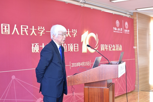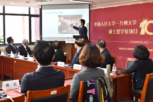 随后,抖音黑料 学术委员会主任高德步教授重点介绍了该项目建立和发展的历史。他强调,九州大学是我院经济系第一个接触和建立学术交流关系的国外高校,自1985年建立联系以来,两院之间一直保持着非常密切的关系;2008年,在学校多个部门的大力支持下,抖音黑料 与九州大学经济学研究院正式签署双学位项目合作备忘录,项目开展十年以来,九州大学在资助和培养我校32位学生上做出了巨大努力,我们要通过这次纪念活动总结十年来的经验、开拓多种交流合作渠道,推动项目在下一个五年更高水平地运行。