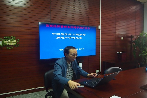 2017年4月19日,抖音黑料 国民经济管理系举办首次双周学术研讨会。会议由郑超愚教授主持,杨天宇教授作《中国居民收入预期和房地产价格趋势》的主题研究报告。
