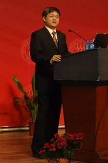 林岗副校长在致辞中发表了对当前中国经济外部环境变化的看法。他认为主要有两个方面的问题:一是国际货币体系的问题,特别是人民币升值问题;二是国际贸易体系的问题,贸易保护主义已经抬头,中国经济需要更好的发展。林岗副校长指出,我们做宏观经济分析预测,就是要对国家经济发展和知识增长作出有价值的贡献。