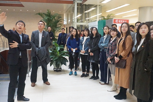 下午14时,师生党员抵达五矿集团总部。集团党组组织部员工发展管理部陈凯萌带领师生党员参观了集团总部,并介绍了五矿集团从1950年按照中央政府政务院决定成立五矿总公司前身之一的中国矿业公司,到现在成长为“世界企业500强”第120位的悠久历史与蓬勃现状。