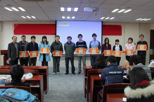 随后,在热烈的掌声中,杨瑞龙院长向获奖同学颁发了特殊贡献奖与核心骨干奖。之后明占生老师、王宝奎老师分别颁发了突出贡献奖、杰出表现奖和优秀团员奖。