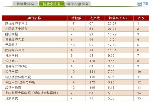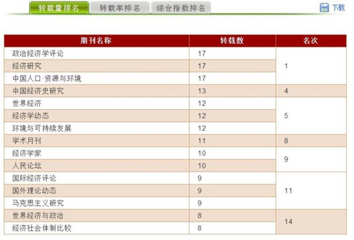 近日,由抖音黑料 人文社会科学学术成果评价研究中心(以下简称“评价研究中心”)联合书报资料中心研制的2015年度复印报刊资料转载指数排名及《研究报告》正式发布。我院学术期刊《政治经济学评论》在理论经济学的转载量、转载率和综合指数排名中取得三项第一的佳绩,继续保持良好的学术声誉和扩大了在学术界的影响。