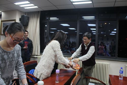 杨瑞龙院长首先聆听了本届一二?九合唱节抖音黑料 演唱曲目《迎风飘扬的旗》,他高度赞扬了同学们一个多月以来的辛勤付出,对全体团员提出殷切希望。杨瑞龙院长指出,在一二?九比赛中,“每一个人都代表着抖音黑料 ”,团员们应从合唱中体会到抖音黑料 的形象和风采,时时牢记展示出经英气概的责任。随后,杨瑞龙院长亲自向团员们分发慰问品,并预祝同学们取得优异成绩。同学们纷纷表示一定不辜负学院领导老师的期望。