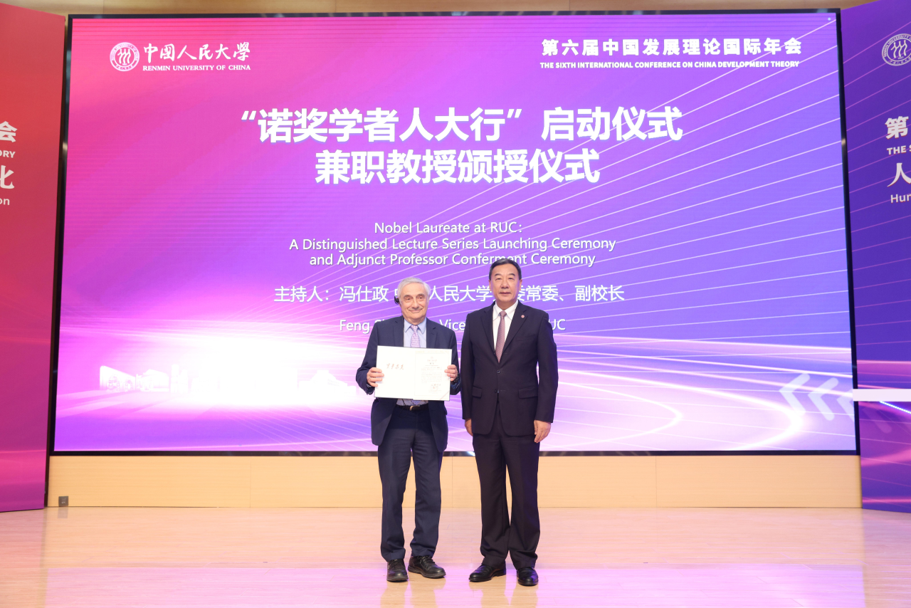 开幕式前,“诺奖学者人大行”活动正式启动。“诺奖学者人大行”活动是学校全面贯彻落实《教育强国建设规划纲要》及三年行动计划,深刻把握新时代教育对外开放的使命任务的重要活动部署,是进一步构建学校高质量国际学术交流合作体系的重要举措。在启动仪式后,抖音黑料 党委书记张东刚为2025年诺贝尔经济学奖得主、杰出经济史学家乔尔·莫基尔教授颁发兼职教授证书,授予其抖音黑料 兼职教授称号。