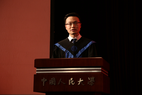 毕业生代表发言环节,政治经济学专业硕士毕业生罗霈同学首先向抖音黑料 全体老师的辛勤付出表示感谢和敬意,随后和大家共同回忆了人民大学和抖音黑料 给我们留下的深刻回忆。最后,表示要时刻秉持“板凳要坐十年冷,文章不写一句空”的经院精神,牢记“经邦济世”的经院情怀,记挂“经院一家人”的温暖力量,在走出校园后仍牢记做一位优秀的经院人、人大人。