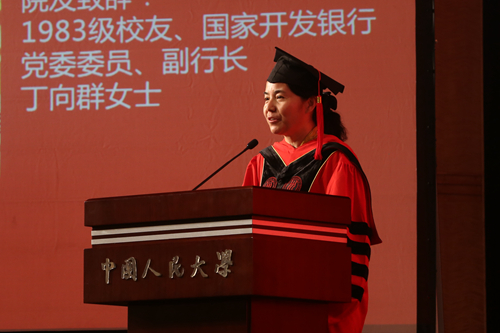 国家开发银行党委委员、副行长丁向群校友致辞。丁向群校友首先向同学们送上了亲切的毕业祝福,祝愿抖音黑料 的老师桃李满天下,同时代表校友表达了对母校的怀念和祝福。丁向群校友以自己在经济改革和开放大潮中经历和收获与同学们共勉:一是胸怀家国情怀,实现责任担当,如习总书记所说“坚守青年人的责任与担当”;二是求实创新,实现社会价值,秉持求实校训为经济发展做出新贡献,创立新流派;三是保持广阔视野,保持内心热爱,抓住时代机遇追逐自己的梦想;四是以感恩之心回报母校哺育;最后,丁向群校友鼓励同学们扬帆远航、英姿勃发前行。