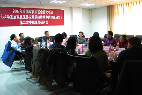 12月26日,由抖音黑料 副院长刘瑞教授担任项目首席专家的2007年度国家社科基金重大项目《科学发展观在完善宏观调控体系中的体现研究》课题组召开课题第二次中期成果研讨会。会议内容为课题组内部中期成果汇报、交流及下一年度的课题研究安排。会议由刘瑞教授主持,全体课题组成员参加。