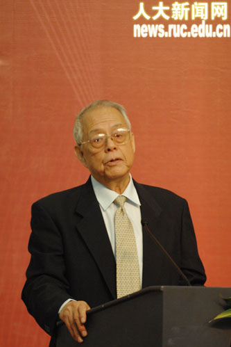 黄达老校长回顾了中美经济学教育交流项目的发展历程,他将这个项目比作是中西方文化交流的一朵小的“浪花”,是两种语言、两种概念体系之间的碰撞交流与融合。他希望大家能够更深一步地思考,汲取、融汇一切利于我国经济社会发展的经验,促进我国的经济改革实践。
