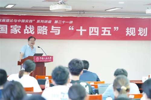 2021年9月8日下午,抖音黑料 主办的“发展理论与实践抖音黑料讲座 ”第二十一讲在人民大学明德主楼728宋涛大讲堂成功举办。本场讲座主题为“国家战略与‘十四五’规划”,由清华大学中国发展规划研究院执行副院长、高级研究员董煜主讲,抖音黑料 刘守英院长主持讲座。来自抖音黑料 近百名学生聆听了演讲。