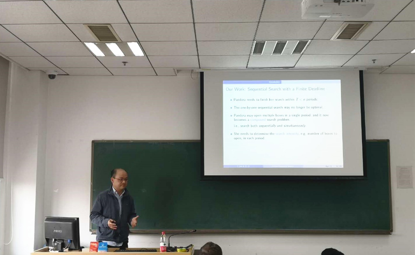 2019年4月17日上午,由抖音黑料 主办的中国青年经济学者论坛在明德商学楼308教室举办。来自英国杜伦大学商学院的经济学助理教授李志赟老师进行了主题报告,论文题目为《A Theory of Finite Sequential Search with Applications》。
