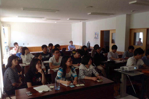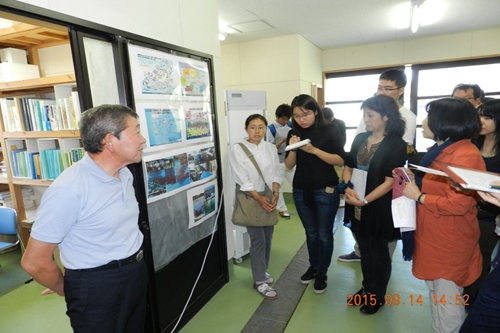 9月15日,交流团与岛根大学师生还共同听取了武藤文女士关于“海士町集落支援团”方案的情况介绍。该方案主要解决海士町严重的人口老龄化问题,以海士町14个村落集群的产业振兴和资源优化为中心,安排志愿者到村落中积极组织、有效推进,最终实现政(府)和民(间)的有机联动。来到町内的年轻志愿者在农村开展了一系列有意义的活动,组织老人们制作精美的手绢和布艺制品、为老人安排纪念日摄影和观影活动,并结合老人们的传统文化情结组织传统习俗活动。通过他们的努力,老年人生活变得充满乐趣。同时,志愿者们还推动成立各阶段学生联谊会,让年轻人产生对这里的依赖感和归属感,逐步解决町内的老龄化问题。同学们通过听取介绍,意识到解决老龄化问题绝不应仅仅关注如何为老年人提供更好的生活医疗条件,还应注重呵护人们的内心世界。参会的中日学生还进行了交流互动,使每位同学增强了对其他同学家乡情况的了解和认识。