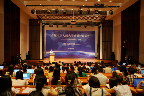 陈雨露校长在致辞中表示,世界经济运行的规律复杂而深刻,对世界经济的研究要拥有全球化的视野和历史主义的观念。2015年,世界经济形势又呈现出许多新的特征,世界经济复苏之路将充满挑战,要求我们以世界经济中的重大、热点问题为导向,深究其影响和政策含义。随着中国经济结构转型和“一带一路”战略的实施,中国更需要深度了解世界。“世界经济论坛”致力于打造一个中国了解世界,世界了解中国的互动平台,为研究世界经济的专家和学者把握世界经济脉搏,寻求可持续的、共赢的经济繁荣政策提供我们的服务,并通过我们大家持续的共同努力,打造出中国研究世界经济问题的高端“智库”。最后,他希望各位与会专家通过研讨,碰撞出思想的火花,贡献真知灼见,共同探寻世界经济新的增长之路。
