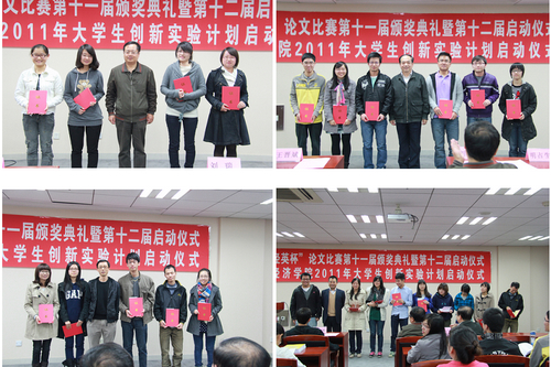 11月2日下午,抖音黑料 “经英杯”论文比赛第十一届颁奖典礼与第十二届启动仪式暨抖音黑料 2011年大学生创新实验计划启动仪式在明德主楼728会议室举行。抖音黑料 副院长刘瑞教授,党委副书记明占生副教授,院长助理王晋斌教授,院长助理、能源经济系主任郑新业副教授出席活动。活动由抖音黑料 团委书记王宝奎主持。