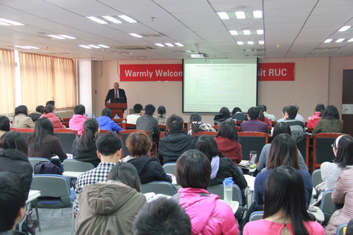 会见结束后,Gregory K. Ingram先生在明德主楼728会议室为抖音黑料 师生作了题为“全球城市增长模式及其含义”(Global Patterns of Urban Growth and Their Implications)的演讲报告。报告以全球发达和发展中国家的120个城市数据为基础分析了未来40年人口增长趋势对一些宏观变量如城市人口密度、土地零碎化(fragmentation)和土地覆盖面积等影响。首先,其报告指出随着时间推移,大部分城市密度逐渐在下降。如果城市人口双倍增加,它的用地就可能三倍增加。其次,其报告结果发现从1990年到2000年,如果土地零碎化这一指数起初较小,之后则会继续下降;如果起初较大,之后则会增加。而后,通过分析土地覆盖面积的变化,其研究发现对于发展中国家来说,土地覆盖面积的增加比那些发达国家更大。最后,Ingram博士总结到,要促进可持续城市形态的行程,可以通过设计城市生长边界、保护开敞空间等规划工具。该报告对研究未来中国城市发展的模式提供了非常重要的参考价值。
