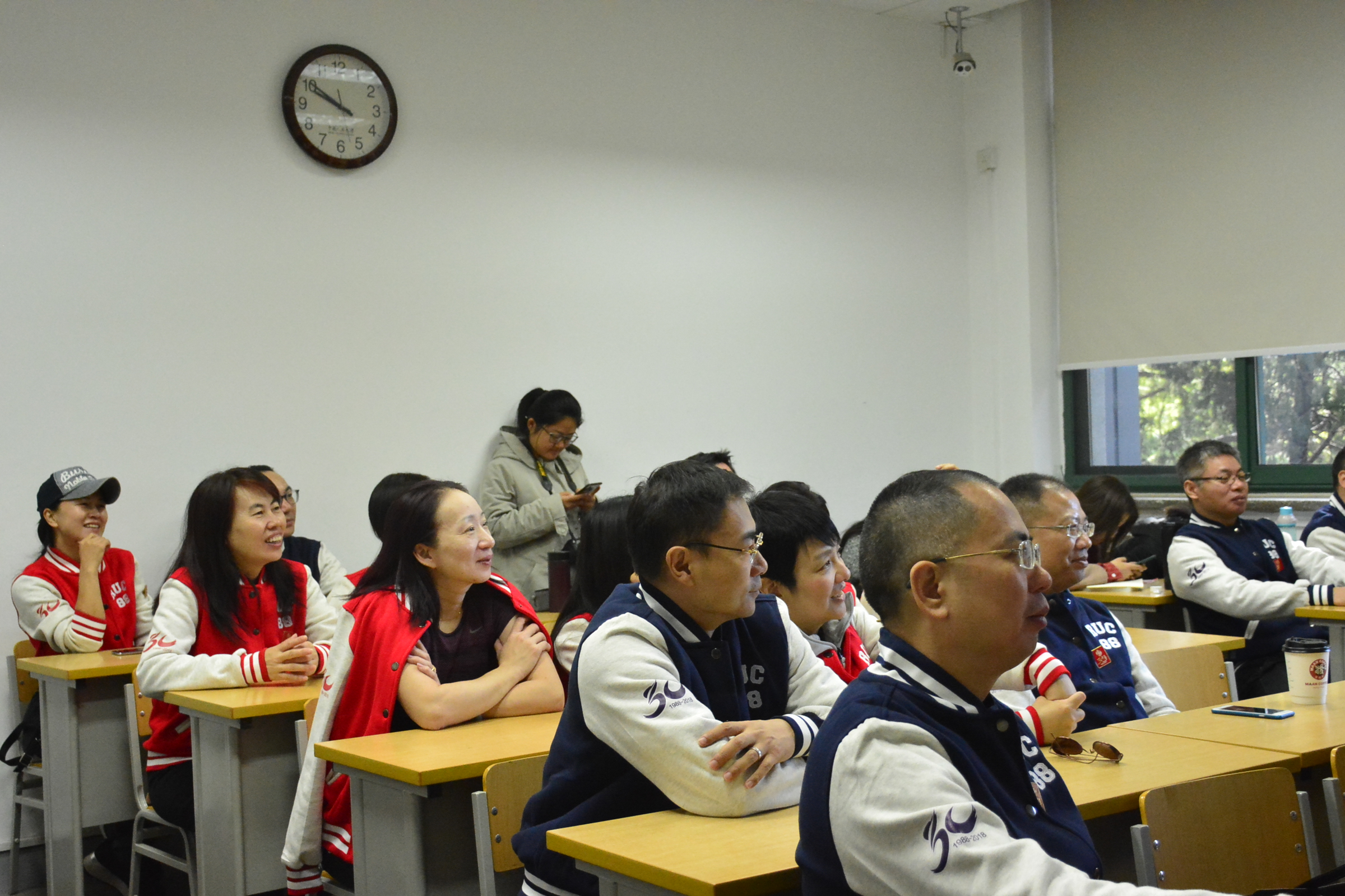 作为院友们昔日的老师,程大为教授出席了他们的座谈会。相隔30年的光阴,程大为教授以中美贸易摩擦的原因、形势和发展前景为题,给大家上了一堂生动的专业课。在短短的授课中,程大为教授结合自身经历,分析了当下的世界格局,强调中国要抓住贸易的主动权。此外,她也就如何在贸易中嵌入中国文化提出了自己的观点。她理性分析了中国贸易发展中的缺位和盲区,最后得出贸易战实质上是逻辑战、文化战的结论。院友们认真倾听,频频颔首,偶尔会心而笑。教室里气氛温暖融洽,在座院友仿佛回到了当年的学生时代。