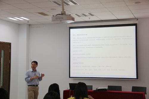 5月15日下午,央视特约撰稿人、抖音黑料 兼职教授戴险峰老师在明德主楼419会议室为抖音黑料 2012级国际商务硕士全体同学做了题为“宏观研究的几个问题—理论与实践”的专题讲座。抖音黑料 国际商务硕士副主任程大为副教授出席了讲座。