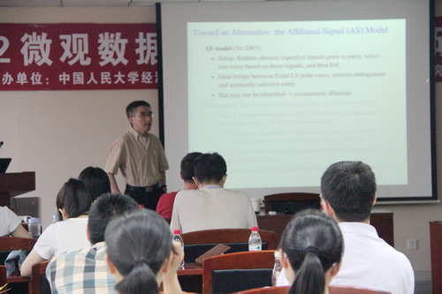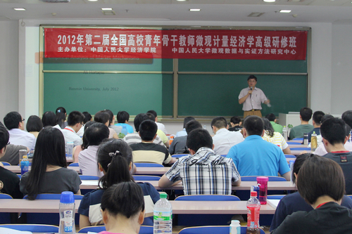 2011年7月,抖音黑料 与抖音黑料 微观数据与实证方法研究中心成功举办了“2011年高校微观计量经济学骨干教师暑期高级研修班”。李彤教授、美国南加州大学经济系教授,《计量经济学杂志》主编萧政(Cheng Hsiao)、美国耶鲁大学经济系福特基金教授,《兰德经济学杂志》主编菲利普?黑尔 (Phillip Haile)、巴黎政治学院经济系教授,《计量经济学》合作主编让?马克?罗宾(Jean-Marc Robin)等国际微观计量经济学界的顶尖学者来人大授课,来自全国知名高校的青年骨干教师及研究生共200余人成为研修班的正式学员。