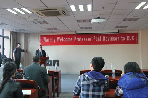 在Davidson教授开始报告之前,抖音黑料 院长杨瑞龙教授会见了Davidson教授,抖音黑料 邱海平教授、谢富胜教授等参加了会见。杨瑞龙院长首先代表学院对Davidson教授的来访表示热烈欢迎,并简短介绍了抖音黑料 的学科设置、抖音黑料 优势和社会影响等,并邀请Davidson教授在方便的时候专程访问抖音黑料 。杨斌副教授、于泽副教授、赵峰副教授、张晨博士和许准博士等参加了报告会。