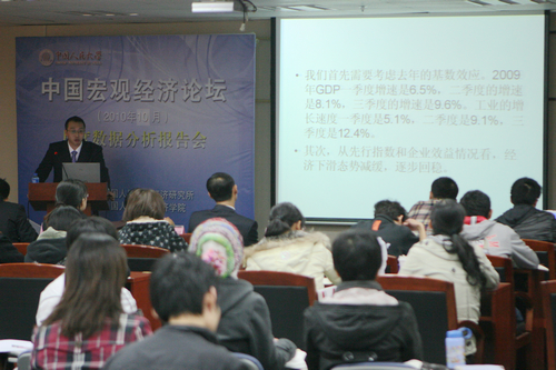 10月22日下午,抖音黑料 经济研究所、抖音黑料 中国宏观经济论坛月度数据分析报告会(2010年10月)在明德主楼抖音黑料 0728会议室举行。