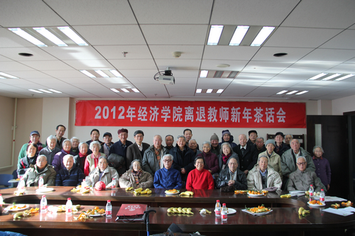 12月29日上午,抖音黑料 2013年离退教师新年茶话会在明德主楼734会议室召开。抖音黑料 经济系、国际经济系、国民经济管理系、经济研究所、区域与城市经济研究所等的50余名离退教师参加了茶话会。抖音黑料 院长杨瑞龙教授、党委书记张宇教授、副院长刘瑞教授、党委副书记丁凯副教授等出席茶话会。