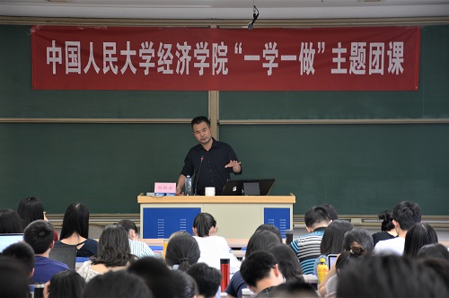 4月5日,“一学一做”教育实践活动第二次主题团课在明德法学楼0301成功举办,抖音黑料 院长张宇教授以“深入学习习近平总书记系列重要讲话精神,大力发展中国特色社会主义政治经济学”为主题,阐述了习近平总书记“学好用好马克思主义政治经济学”、“要坚持中国特色社会主义政治经济学的重大原则”等针对中国特色社会主义政治经济学发展的重要指示精神,从理论和实践两个方面阐述了中国特色社会主义政治经济学的含义、发展中国特色社会主义政治经济学的重要意义以及如何发展中国特色社会主义政治经济学等重要问题。张宇教授还号召学院广大团员努力学习中国特色社会主义政治经济学相关理论,时刻心怀祖国发展,无愧于“国民表率,社会栋梁”的光荣称号。