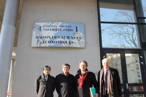 2月21日,代表团一行访问法国巴黎第一大学。巴黎一大抖音黑料 院长Jean -Claude Berthelemy教授、抖音黑料 Claude Menard教授以及PSME行政秘书Morgan A. Hull先生热情接待了抖音黑料 代表团。双方就合作建立双学位问题进行了探讨,并取得了一定的共识。