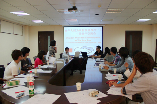 交流会上,第一组发言的同学是抖音黑料 的郭琦和潘思雨。他们在分析中国当代农村问题的基上,发现年轻人在提高农村的教育质量方面可以发挥重大作用,并辅以亲身参与的事例加以说明。第二组发言人是岛根大学学生芝木达也等三名学生。他们针对日本农村的现状提出,年轻人应当继续回到农村以补充紧张的劳动力资源。他们以亲身经历介绍了“学生人材库”等三个由岛根当地年轻人创办的促进人才回流乡村的组织,以说明日本政府对于年轻人支持农村发展的重视程度。第三组中方发言人徐剑同学介绍大学生村官在我国的发展情况,同样展示了中国政府对农村问题如此重视。最后一组发言的是岛根大学泷野信一等三位同学。他们从日本农村的历史讲起,说到了农作物在销售流通中的问题,并以亲身事例表明,年轻人通过社会活动,能帮助扩大农产品销路,解决一些在政府能力范围之外的问题。