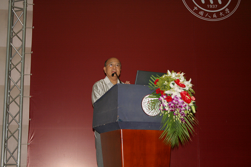 随后, 国家一级教授 胡乃武老师发表讲话。他表达了对新同学的殷切希望,并建议同学们处理好以下六个关系:为人与治学的关系;学与思的关系;基础理论学习与专业学习的关系;精读与泛读的关系;必修课与选修课的关系;天资与勤奋的关系。