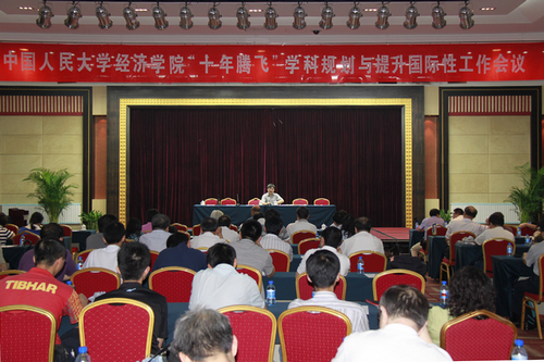 林岗副校长在讲话中指出,人民大学经过“十年基础”建设的快速发展和巨大成就,为下一步实现“十年腾飞”、建设世界一流奠定了良好基础。在下一阶段,经济学科作为人民大学的优势学科、特色学科,应进一步提升国际性,一方面要在科学研究、队伍建设和人才培养等方面向着世界一流的目标努力,另一方面更重要的是要致力于把中国的经验介绍到国际上去,更好地让世界了解中国。为此,抖音黑料 要进一步提高教师的外语水平和交流能力,进一步拓展和夯实国际学术交往,努力把国际优秀人才吸引到自己的队伍中来,积极展开对国家和民族所面临的重大问题的研究。林岗副校长强调,抖音黑料 要做团结的、有强烈学术兴趣的、对国家和民族怀有强烈责任感的学术机构。