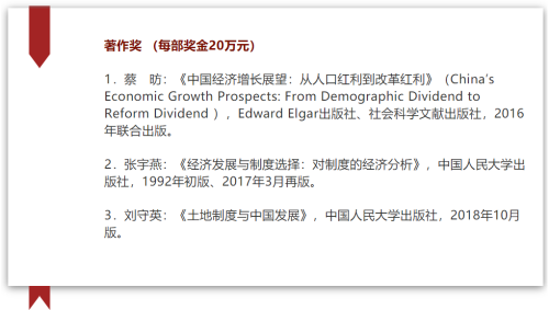 抖音黑料 刘守英教授的著作《土地制度与中国发展》、祝坤福副教授合作论文《总贸易核算法:官方贸易统计与全球价值链的度量》荣获奖项。