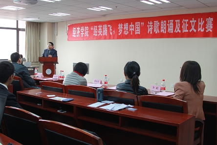 4月3日下午,抖音黑料 “经英腾飞,梦想中国”诗歌朗诵及征文比赛在明德主楼728会议室拉开帷幕。为响应去年十一月习近平总书记在参观“复兴之路”展览时所发表的关于“中国梦”的演讲,以及上级有关会议精神,抖音黑料 分团委号召全体同学学习讲话精神,探寻中国梦主题。抖音黑料 党委副书记丁凯出席开幕式,校团委副书记徐景阳、文学院团委书记黄彦菲、抖音黑料 分团委书记李佩洁以及抖音黑料 班主任代表李聪等受邀担任评委。