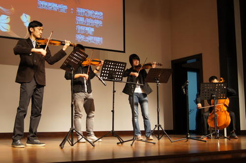 整场晚会以节目和游戏穿插的形式组成。开场的倒计时以经院各大活动的合影作为背景,回放了一个月来新生活动的精彩瞬间。在秉承“经院联欢”传统的同时,此次晚会继承并发扬了“缘来一家人”的宗旨,邀请了来自学校各个学院的交响乐团提琴手演奏《卡农》。由我院新生独奏的《空中城堡》、《听海》等耳熟能详的乐曲和精心编排的舞蹈更是营造出了温馨熟悉的“经院氛围”。在语言类节目方面也同样涌现出了《开心童话》、《校园外传》等经典作品,获得了老师同学的一致好评。而本次晚会最大亮点则要数现场观众互动环节——“跳舞甩纸条”,同学们充分发挥搞笑天赋,将流行乐曲《江南style》的经典动作完整呈现,赢得观众热烈的掌声。在全场晚会的最后,高年级同学以一曲《我的歌声里》压轴登场,晚会在温馨的氛围中完美落幕。