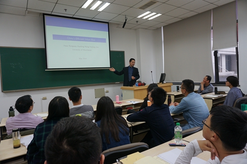 座谈结束后,曼彻斯特大学王晓兵博士为我院师生做了题为“Middle income trap and China’s future growth” 的演讲,文章利用动态一般均衡框架构造了一个两部门模型,其中城市部门由于从政府获得更多的投资服务从而比农村部门具有更高的生产率,此时若存在歧视性的公共政策,则将导致人口从农村流动到城市,并且从经济学的角度来看,这种歧视政策在最大化产出的意义上是有效率的。这一模型可分析诸多现实问题,例如中国的户口政策对于经济发展的影响。讲座在热烈而有效的交流讨论中结束。