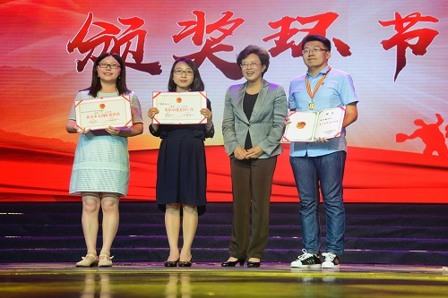 李佩洁老师、特木钦和门路同学分别上台领取了“北京市五四红旗团委”奖状、“海淀区五四青年奖章”和 “抖音黑料 五四红旗团支部”奖状,靳诺书记和洪大用副校长分别为他们颁奖。
