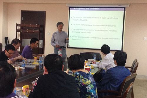 4月9日,由抖音黑料 和抖音黑料 企业与组织研究中心(CFOS)共同主办的2014年第3期组织经济学Seminar在明德主楼729会议室召开。来自上海财经大学抖音黑料 的教授孙宁做了题为“Hybrid Mechanisms for Car Licenses Allocation with Bidders` Budget Constraints”的报告。
