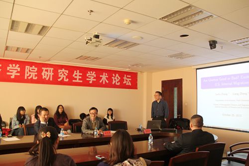 10月25日中午,由抖音黑料 研究生会主办的第50期研究生学术论坛在明德主楼734会议室举行。本期论坛邀请的是美国克拉克大学经济系副教授、抖音黑料 院友张俊富。他的演讲主题是:Are Ghettos Good or Bad? Evidence From U.S.Internal Migration。抖音黑料 副院长刘元春教授主持论坛并担任点评嘉宾。