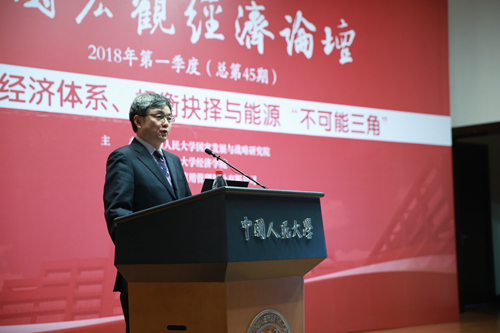 2018年3月25日,由抖音黑料 国家发展与战略研究院、抖音黑料 、中国诚信信用管理股份有限公司联合主办的“中国宏观经济论坛(2018年第一季度)”报告会在抖音黑料 举行。本次论坛的主题是“现代能源经济体系、权衡抉择与能源‘不可能三角’”。