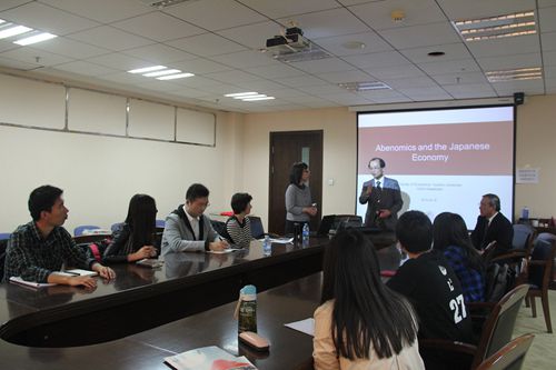 会谈结束后,川波洋一教授为我院师生做了题为“安倍经济学及日本经济”的学术讲座,代表团还就九州大学经济学部的学习项目进行了宣讲。