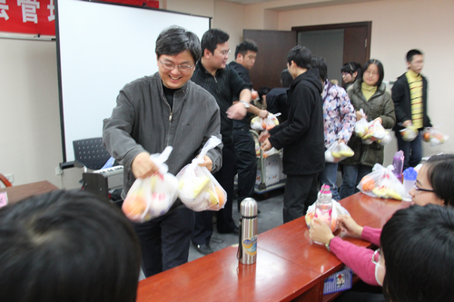 11月23日,抖音黑料 杨瑞龙院长、明占生副书记在明德主楼728亲切慰问了抖音黑料 “一二九”学生合唱队,给队员们带来了深切的关怀和问候,并给同学们发了水果、牛奶等慰问品。
