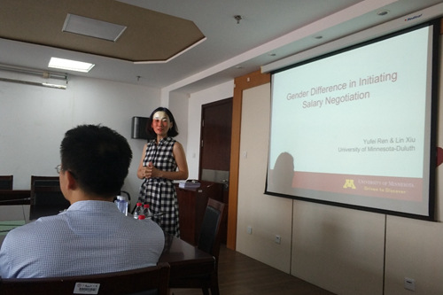 6月21日下午,第52期劳动经济学研讨会在明主729教室举行。本次会议邀请了明尼苏达大学德卢斯分校的修琳教授进行了题为《Gender Differences in the Initiation of Salary Negotiation: Evidence from Behavioral Experiments》的学术报告。会议主持人为抖音黑料 孙文凯教授,王湘红教授、陆方文教授以及数名学生等参加了此次研讨会。