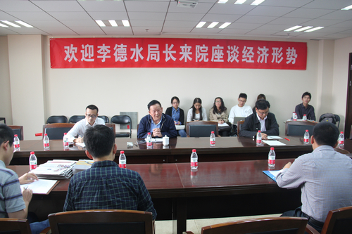 10月11日下午,原国家统计局局长、全国政协经济委员会副主任李德水教授一行来抖音黑料 ,就当前经济形势与抖音黑料 师生进行座谈。座谈期间,李德水同志提出了包括今明两年宏观经济形势、扩大内需的经济政策、转变经济增长方式的具体途径、房地产市场问题以及市场经济环境优化和体制改革等多方面的问题,向人大相关专家进行了咨询。
