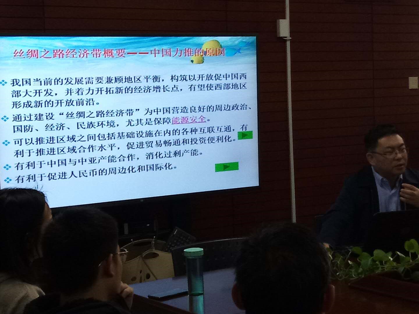 高教授在讲座中重点介绍了以下几个方面的情况:第一点,新疆的经济发展状况以及自然禀赋情况;第二点,中亚国家的地理区位,经济发展情况,产业布局情况,自然禀赋利用开发情况;第三点,中亚国家和中国的经济关系如贸易依存度以及外交概况,同时概述了中亚国家间的外交关系以及与俄罗斯的关系;第四点,中国和中亚国家在“一带一路”背景下的机遇与挑战。同时也让大家更加了解新疆的风土人情,地形概貌,点燃了学生们毕业后投身于新疆发展的激情。